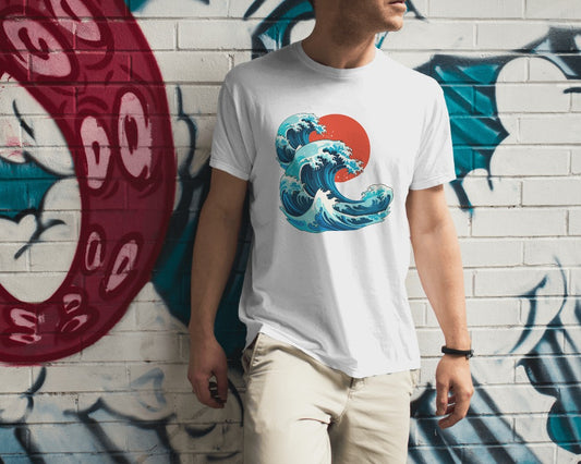 Great Wave White - Casual Travel Themed Printed T-Shirt