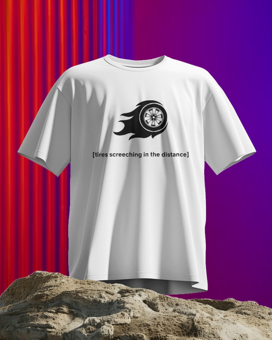 Tyre Screeching - Flix Series Printed Cotton White T-Shirt